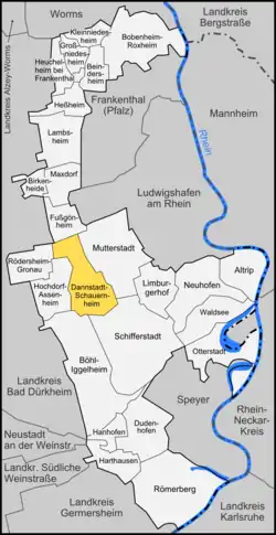 Dannstadt-Schauernheim is a municipality in the Rhein-Pfalz-Kreis, in Rhineland-Palatinate, Germany.