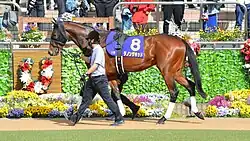 Danon The Kid is a bay colt bred in Japan by Northern Farm. As a yearling in 2017 he was consigned to the Select Sale and was bought for ¥108,000,000 by Danox Co Ltd.[5] The colt was sent into training with Takayuki Yasuda.