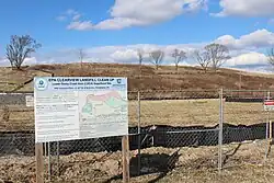 EPA Superfund Signage at the Clearview Landfill with covered landfill in background