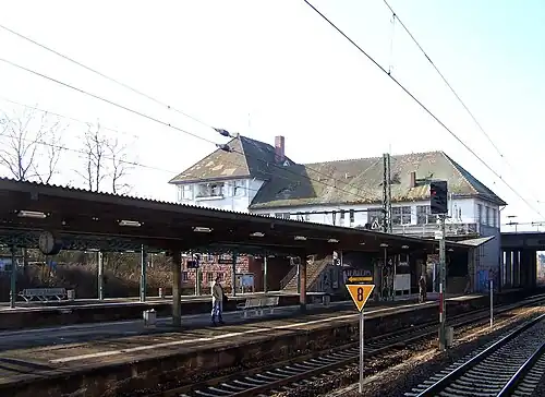 In 2005, the passenger tracks of the Odenwald railway were connected east of the station to the track of the Rhine-Main Railway running towards Darmstadt, which was in turn connected to the freight line. This rebuilding, costing €9 million, made it possible for trains from the Odenwald railway to run directly via the so-called Frankfurt curve (Frankfurter Kurve), which was originally intended only for freight traffic towards Arheilgen, so that they could continue on to Frankfurt.[4] This meant that it was now classified as a Kreuzungsbahnhof (crossing station), as passenger services could now branch on both sides of the station.