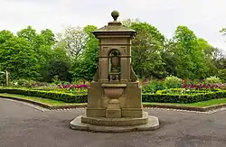 Budgets were set for building a lodge and laying out the park. An advertisement in The Gardeners' Chronicle invited designs from landscape gardeners, which was won by John Maclean of Donnington Park in Leicestershire. Sites within the park were fixed in January 1877.The Earl donated trees and shrubs and a fountain from his home, Patshull Hall.[1][2]