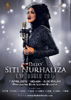 Dato' Siti Nurhaliza Unplugged 2015 was a concert by Malaysian recording artist, Siti Nurhaliza. It was held on 7 April 2015 at Istana Budaya and marked her twentieth year in the Malaysian music industry. Almost all the songs performed during this one-night concert were from her own repertoire, covering her hits and popular songs from the beginning of her career to more recent ones.