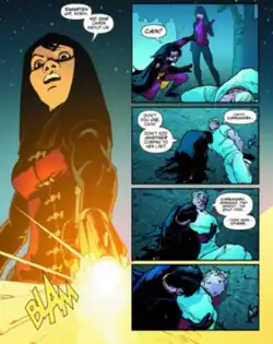In the One Year Later storyline, Robin captures Cain and offers him to the League of Assassins to rescue Cassandra—only to learn she has become their new leader under the influence of Deathstroke’s mind-control serum.[6] Cassandra shoots Cain, apparently killing him, though his body is never found.[1]