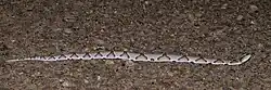 Eastern copperhead (Agkistrodon contortrix) on a forest road at night.