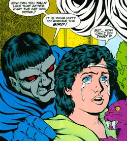 In The New 52 continuity reboot, DeSaad contemplates incorporating Superman's DNA into a new type of Parademon.[8] Five years later, he impersonates Michael Holt in an attempt to capture Power Girl.[9]