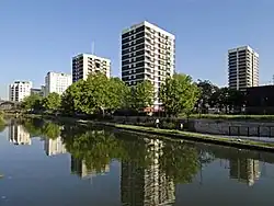 In the early 1960s the northern part of De Beauvoir Town between Buckingham Road and Tottenham Road was rebuilt as the Metropolitan Borough of Hackney's Kingsgate estate. In the late 1960s a larger area west of the canal basin, which contained many small factories, made way for the De Beauvoir Estate. The east side of De Beauvoir Square was also rebuilt as the Lockner Road estate.