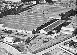 The Decauville plant was opened in 1923 not far from the Massey-Ferguson factory in Marquette. It was one of the four Decauville factories alongside those in Corbeil-Essonnes, Aulnay-sous-Bois and Moulins.[1] The advantages of the location were the availability of extensive land and good accessibility for steel and iron via numerous railway lines. The Deûle Canal was not used as the metal came by rail from Lorraine.