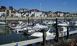 Deganwy is a town and electoral ward in the community of Conwy in Conwy County Borough in Wales. It lies in the Creuddyn Peninsula alongside Llandudno (to the north) and Rhos-on-Sea (to its east). Historically part of Caernarfonshire, the peninsula is in a region of north Wales where as many as 1 in 3 of residents are able to speak Welsh,[1] and is home to some of the most expensive streets in Wales.[2] Deganwy is located on the east bank of the River Conwy. The original wooden castle was rebuilt in stone after 1210. Deganwy is in the ecclesiastical parish of Llanrhos, and has a Victorian era Gothic parish church dedicated to All Saints.