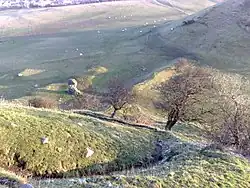 The east end of the saddle at the summit of the hill where Mansell's Tower used to stand -