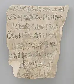 - ^ a b Lesko, Leonard H. (1994). Pharaoh's workers: the villagers of Deir el Medina. Ithaca (N.Y.): Cornell University Press. p. 119. ISBN 978-0-8014-2915-6.