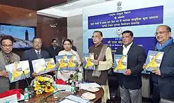 Former Minister for Agriculture and Farmers Welfare, Shri Radha Mohan Singh releasing the National Action Plan for Dairy Development of Department of Animal Husbandry, Dairying & Fisheries, in New Delhi.