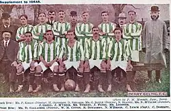 The club, formed as St Columb's Hall in 1890, changing to Derry Celtic in 1893, and St Columb's Hall Celtic in 1896,[1] was once the primary team in the city, but was voted out of the Irish League in 1913 and is now defunct.[2]