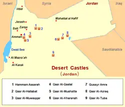 1. ^ a b c Khouri, R.G., The Desert Castles: A Brief Guide to the Antiquities. Al Kutba, 1988. pp 4-5