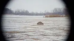 View of a muskrat lodge through permanent viewing telescope in Gibraltar Bay Unit on Grosse Ile