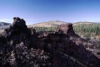 Devils Garden Volcanic Field is a volcanic field located south east of Newberry Caldera in Oregon.[1] The lava field consists of several flows of pahoehoe lava that erupted from fissure vents in the northeast part of the Devils Garden. The main vent on the north end of the fissure created a lava tube system. Several small vents to the south produced the Blowouts (two large spatter cones), several small spatter cones, and flows. Several older hills and higher areas were completely surrounded by the flows to form kipukas. The distal ends of the flows show excellent examples of inflated lava.[2]