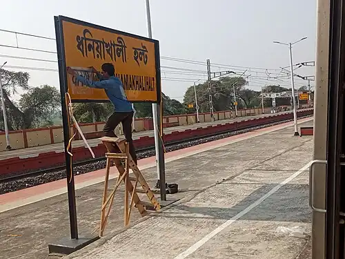 2. ^ "DHANIAKHALI HALT (DNHL) Railway Station". NDTV. Retrieved 18 May 2019.