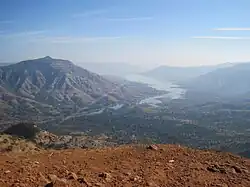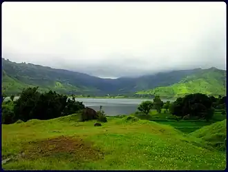 ![]() Dhom Lake, below Balakwadi Dam, viewed from Kate's Point near Mahabaleshwar | |