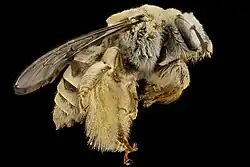 Diadasia rinconis is a species of chimney bee in the family Apidae. It is found in Central America and North America.[1][2][3] In the Sonoran Desert, D. rinconis is considered the "cactus bee" as it feeds almost exclusively on a number of Sonoran Desert cactus species, its life cycle revolving around the flowering of the native species of cacti.[4] These bees exhibit a tawny coloration, with abdomens either striped with pale bands or covered with pale-gold hairs. Female Diadasia species possess bushy pollen-collecting hairs on their hind legs and distinctive brushes of long hairs on their forelegs. Males often have elongated hind legs. [5]