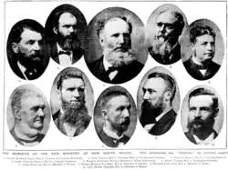 - ^ Francis Suttor was not a member of parliament at the time of his appointment. He was a candidate for Bathurst at the 1889 election but was unsuccessful,[8] and was appointed to the Legislative Council on 21 February 1889.[9]