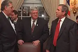 Armey with President George W. Bush and Dennis Hastert in January 2001