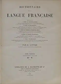The Dictionnaire de la langue française (French pronunciation: [diksjɔnɛːʁ la lɑ̃ɡ fʁɑ̃sɛːz]) by Émile Littré, commonly called simply the "Littré", is a four-volume dictionary of the French language published in Paris by Hachette.