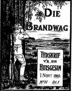 Die Brandwag was the first illustrated family magazine published in Afrikaans in the Transvaal, appearing monthly between 1910 and 1922 under the joint editorship of Dr W M R Malherbe and Gustav Preller.[1] The first issue appeared on 31 May 1910 and the last in February 1922.