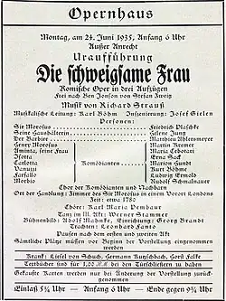 - ^ Casaglia, Gherardo (2005). "Die schweigsame Frau, 24 June 1935". L'Almanacco di Gherardo Casaglia (in Italian).