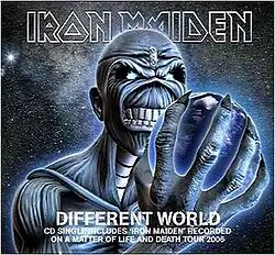 "Different World" is a song by English heavy metal band Iron Maiden. It is the opening track from their 14th studio album, A Matter of Life and Death (2006), and was released as the second single from the album. It was released on 14 November 2006 in the United States, and 26 December 2006 in Europe. The song has been stated by the band to be a tribute to Thin Lizzy due to the low sounding melodies sung by Bruce Dickinson that are reminiscent of those Phil Lynott would sing. It was also played first every night on the band's A Matter of Life and Death Tour.
