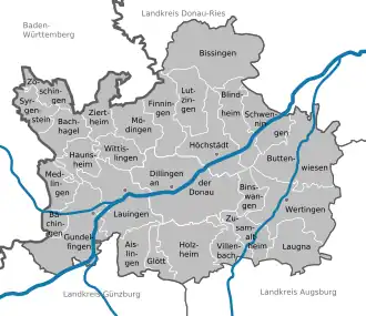 Dillingen is a Landkreis (district) in Swabia, Bavaria, Germany. It is bounded by (from the north and clockwise) the districts of Donau-Ries, Augsburg and Günzburg, and by the state of Baden-Württemberg (district of Heidenheim).