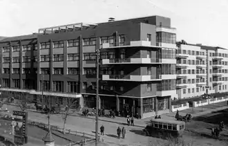 Dinamo Residential Complex (Russian: Жилой комплекс «Динамо») is a constructivist building complex in Tsentralny City District of Novosibirsk, Russia. It is located on the corner of Krasny Avenue and Oktyabrskaya Street. The complex was built in 1934–1936. Architects: Boris Gordeyev, S. P. Turgenev, V. N. Nikitin. It included a hotel and residential buildings for NKVD employees and furthermore a tavern staffed by NKVD employees.