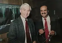 Dinker Belle Rai is an Indian American vascular surgeon who serves as the chairman of the Department of Surgery and as the Chief of the Department of Vascular Surgery / Vascular Laboratory at the Interfaith Medical Center, Brooklyn, New York. He is a visiting clinical professor at the Health & Science Center of the State University of New York in Brooklyn and a visiting professor at the Rajiv Gandhi University in Bangalore, India. Rai is a Fellow of the American College of Surgeons and a Fellow of the Royal Canadian College of Surgeons. He is credited with developing the first ever method for retrograde catheterization of the venous tree. This invention was given a United States patent in 1988.[1] Based on this patent, a company called The Ideas For Medicine, Inc. (now part of Horizon Medical Products, Inc.) manufactured and still distributes out a series of catheters, known as Rai’s Catheters for use in performing descending phlebographic tests and for venous embolectomies.[2] He is also credited with the discovery of the motion of venous valves in human beings.[3][4] His original research on histopathological specimens of patients with saphenofemoral – incompetency resulted in a paradigm shift in management of varicose veins. He performed the first ever vein transplantation below the knee.[5] The discovery of the right atrial mechanical function is a pivotal discovery in his medical research work. He is an editor for the International Journal of Angiology.[6] Rai has been featured in the book "Jewels of India"[7] for his contributions to medicine, art, sports and cultural arenas.