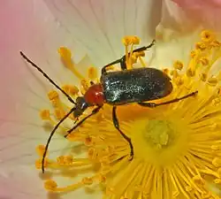 The adult beetles can be found from April to August feeding on pollen of valerians (Valeriana species), common hawthorn (Crataegus monogyna), elderberry (Sambucus species), sweet chestnut (Castanea sativa) and European pear (Pyrus communis).[1][6]