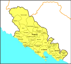 In 1787 the diocese of Pontremoli, and in 1821 the diocese of Massa Ducale were separated from Luni-Sarzana, but the diocese of Brugnato, separated from Luni by Pope Innocent II in 1133, was added by Pope Pius VII on 25 November 1820 in the Bull Sollicita.[33] The diocese of Luni-Sarzana was directly subject to the Holy See, but Brugnato was a suffragan of Genoa.[34]
