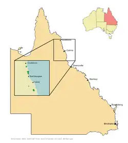 The natural range of Bernie's tamarind is from about Rossville, near Cooktown, south to Innisfail, including the Atherton Tableland southwest of Cairns. It grows in well developed rainforest, from sea level to 600 m (2,000 ft) altitude.[4][5][6][7]