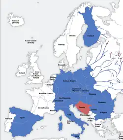The Independent State of Croatia (1941–1945) was a European country located in Southern Europe, corresponding approximately to today's Croatia and Bosnia and Herzegovina. Listed below are its embassies and consulates: