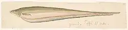 Distocyclus conirostris has a tapering, conical snout with the top and bottom jaws being equal in length. The mouth is located terminally. The eyes are located on either side of a bilaterally compressed, elongated body and are covered by a nictitating membrane.[5] The snout contains a uniquely small nasal capsule for the family Sternopygidae. The mouth of Distocyclus conirostris contains a single row of teeth located on the anterior area of the dentary bone, a trait also unique to this species in comparison to the other members of the Sternopygidae.[5][6]