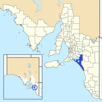 ![]() The District Council of Meningie as it was prior to disestablishment (blue) | |