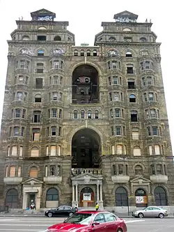 The Divine Lorraine Hotel, also known as the Lorraine Apartments, stands at the corner of Broad Street and Fairmount Avenue in North Philadelphia, Pennsylvania. Designed by architect Willis G. Hale and built between 1892 and 1894, the building originally functioned as apartments, housing some of Philadelphia's wealthy residents. Lorraine Apartments was one of the most luxurious and best preserved late 19th-century apartment houses in Philadelphia. In 1900 the building became the Lorraine Hotel when the Italian-owned Metropolitan Hotel Company purchased the apartments. Later it would become the first hotel in Philadelphia to be racially integrated under Father Divine.