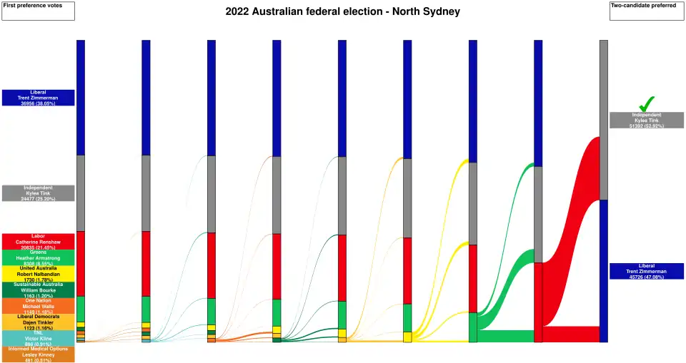 - ^ North Sydney, NSW, 2022 Tally Room, Australian Electoral Commission.