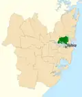 - ^ Lane Cove and Hunters Hill LGAs were transferred to Bennelong, the rest of North Sydney Council was transferred to Warringah, and most of Willoughby was transferred to Bradfield, although parts West of Pacific Highway and South of Fullers Road were transferred to Bennelong