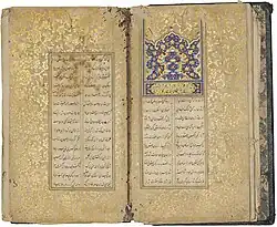 The Diwan, or Divan (Persian: دیوان), is a collection of poems written and compiled by Nasir Khusraw (1004–1088 AD). Khusraw composed most of his poems in the Valley of Yumgan, a remote mountainous region in Badakhshan (in present-day Afghanistan). The Divan contains around 11,000 verses of Khusraw's own poetry, reflecting philosophical, religious, and personal themes.[1]