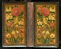 Rose and nightingale on the binding of a Divan of Hafiz (Iran, 1842)