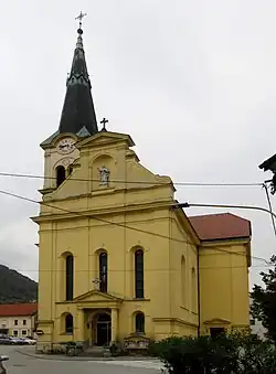 The parish church in the settlement is dedicated to Saint James (Slovene: sveti Jakob) and belongs to the Roman Catholic Diocese of Celje. It was built in 1908 on the site of a Gothic predecessor.[7][3] In addition to the main, marble altar, the church has two side altars created by the stonemason Ignacij Čamernik. Two Venetian mosaics commissioned by Baroness de Seppi to commemorate the brothers Jurij and Franc Gossleth are of special value. Dol pri Hrastniku was made the seat of a parish in 1771.[3]