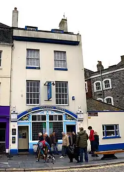 The Dolphin Hotel is a pub on the Barbican in Plymouth, England. The building, which is known as the Dolphin Hotel (never the Dolphin Inn) is a Grade II listed building.[2] It notable as the setting of several of the artist Beryl Cook's paintings.[3][4]