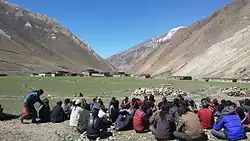 Dolpo can be roughly divided into four valleys, each of which is represented since 1975 by a village development committee (VDC): Dho (Tarap Valley), Saldang (Nankhong Valley, the most populous[1]: 114 ), Tinje (Bentsang Valley), and Chharka (Tsharka Valley).[1]: 105  There are also smaller VDCs at Bhijer, Mukot and Phoksundo.[5]