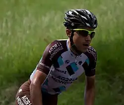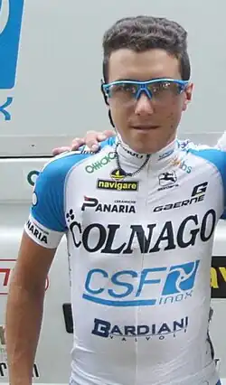Pozzovivo started his season in January at Australia's Tour Down Under, despite suffering from a minor wrist fracture. He stated he was aiming for a top 5 Overall.[45] He finally finished sixth in the general classification.[46] In March, he went on to finish eighth overall in Tirreno–Adriatico. He grabbed his first victory since 2012 on a stage of the Volta a Catalunya. He was part of a group of seven favorites and he attacked two kilometers from the finish line to win solo on the flat finale, after the race went over several climbs.[47] He finally finished the stage race on the third step of the podium.[48] At the end of April, Pozzovivo participated in the mountainous Giro del Trentino. He lost time on Stage 2, but made up for it by taking the stage victory on Stage 3, distancing Richie Porte and Mikel Landa by five seconds after attacking with two kilometers remaining.[49] He finally finished seventh in the general classification of the race.[50] Two days after the Giro del Trentino concluded, Pozzovivo finished eighth of Liège–Bastogne–Liège as part of the leading group.[51]