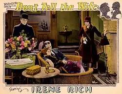 Don't Tell the Wife is a 1927 American silent romantic comedy film directed by Paul L. Stein and starring Irene Rich, Huntley Gordon and Lilyan Tashman.[1]