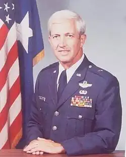 His military decorations and awards include the Defense Superior Service Medal, Legion of Merit with oak leaf cluster, Distinguished Flying Cross, Meritorious Service Medal with oak leaf cluster, Air Medal with 12 oak leaf clusters, Air Force Commendation Medal, Army Commendation Medal and Air Force Outstanding Unit Award Ribbon with "V" device and five oak leaf clusters.