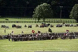 In 2013, Civil War reenactors form lines before the march on Cemetery Ridge, part of a recreation of Pickett's Charge for the 150th anniversary of the Battle of Gettysburg.