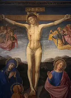 Donato Conte de' Bardi (Active 1426 – 1450/1451) was an Italian painter of the Quattrocento period. He was born in Pavia.[1] He is cited as a painter in Genoa in 1426. In 1433, he painted an altarpiece of the Crucifixion with the Magdalen and Saints for the Cathedral. Another Crucifixion with Saints was painted for the Ospedale di San Paolo in Savona. A Maesta was completed after his death by Giovanni Giorgio in 1451. His work shows some Flemish influences. His brother Boniforte was also a painter.[2]